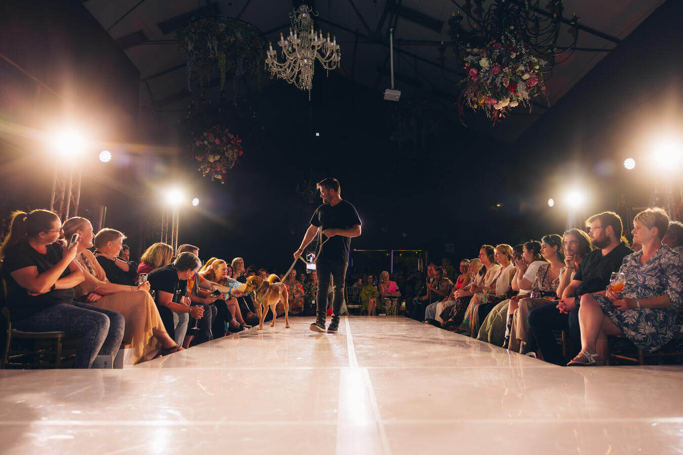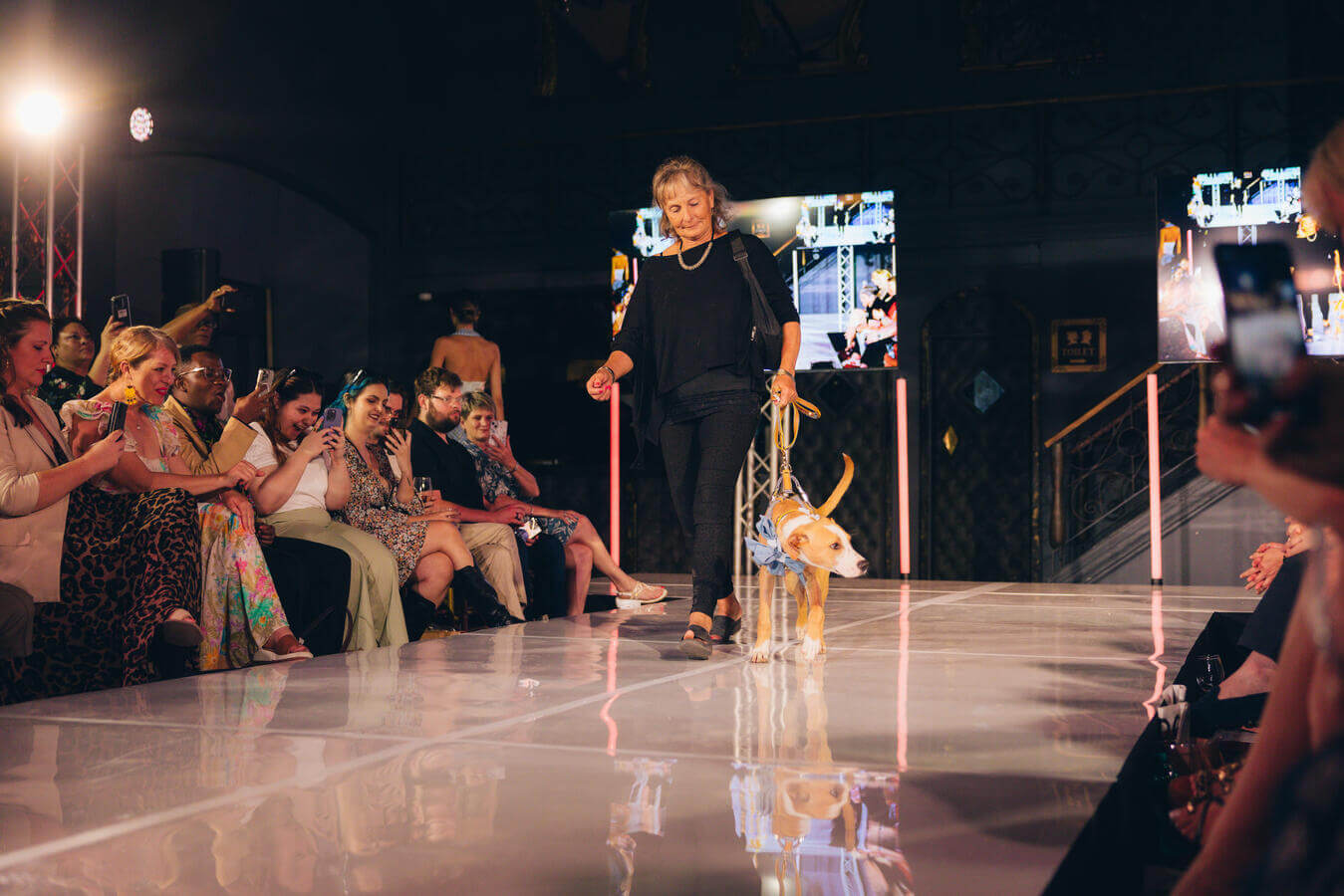 Adoptable TEARS rescue dogs added charm to the show, walking the runway alongside the models. The event, hosted by comedian and radio personality Angel Campey, perfectly combined sustainability and compassion.